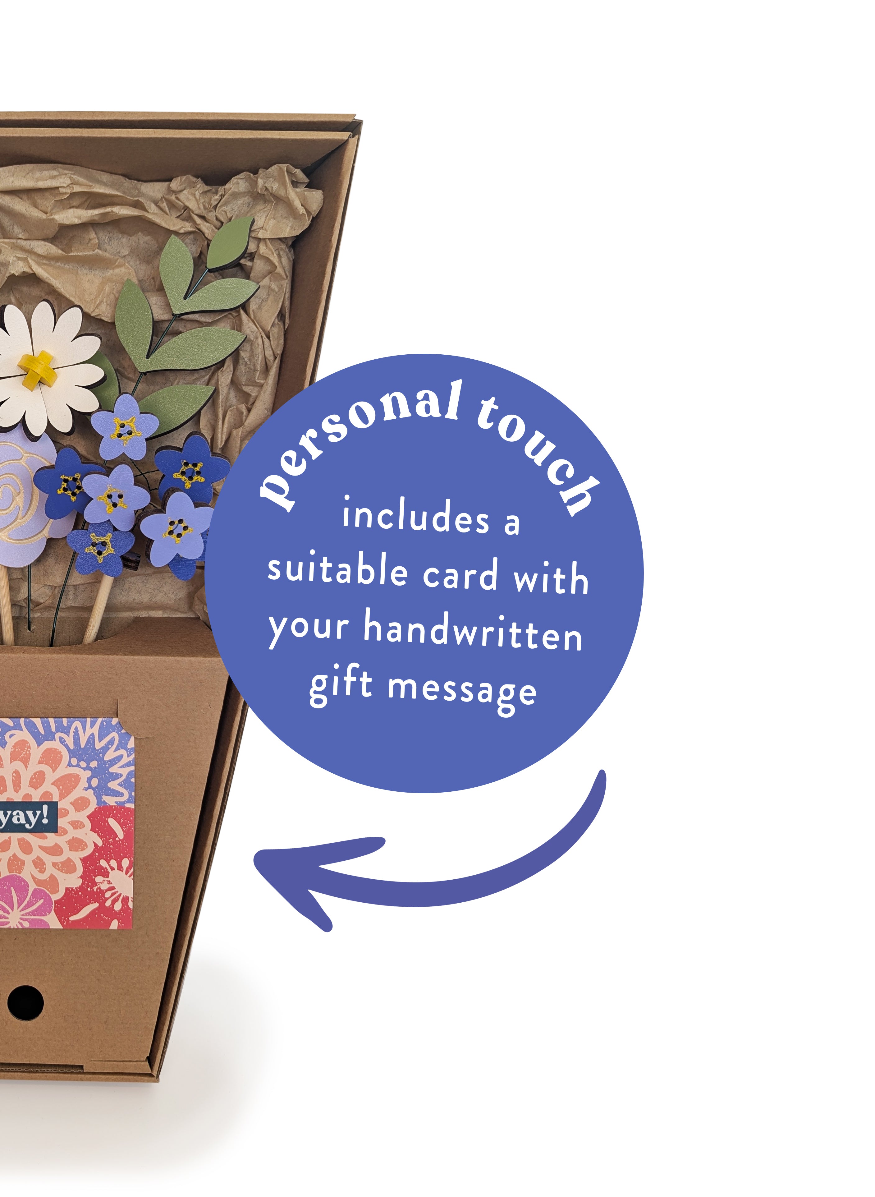 Everything we use in our workshop is carefully sourced to be as planet-friendly as possible so you can smile a little wider when admiring your Poppily blooms. Our flowers are made from sustainable FSC Maple and premium zero VOC paints. Our clever packaging is made from 70% recycled card and completely plastic free. We also partner with Ecologi to plant a tree with every bouquet sold.